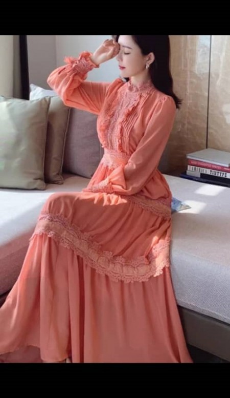 Robe de soirée longue en mousseline de soie pour femmes.